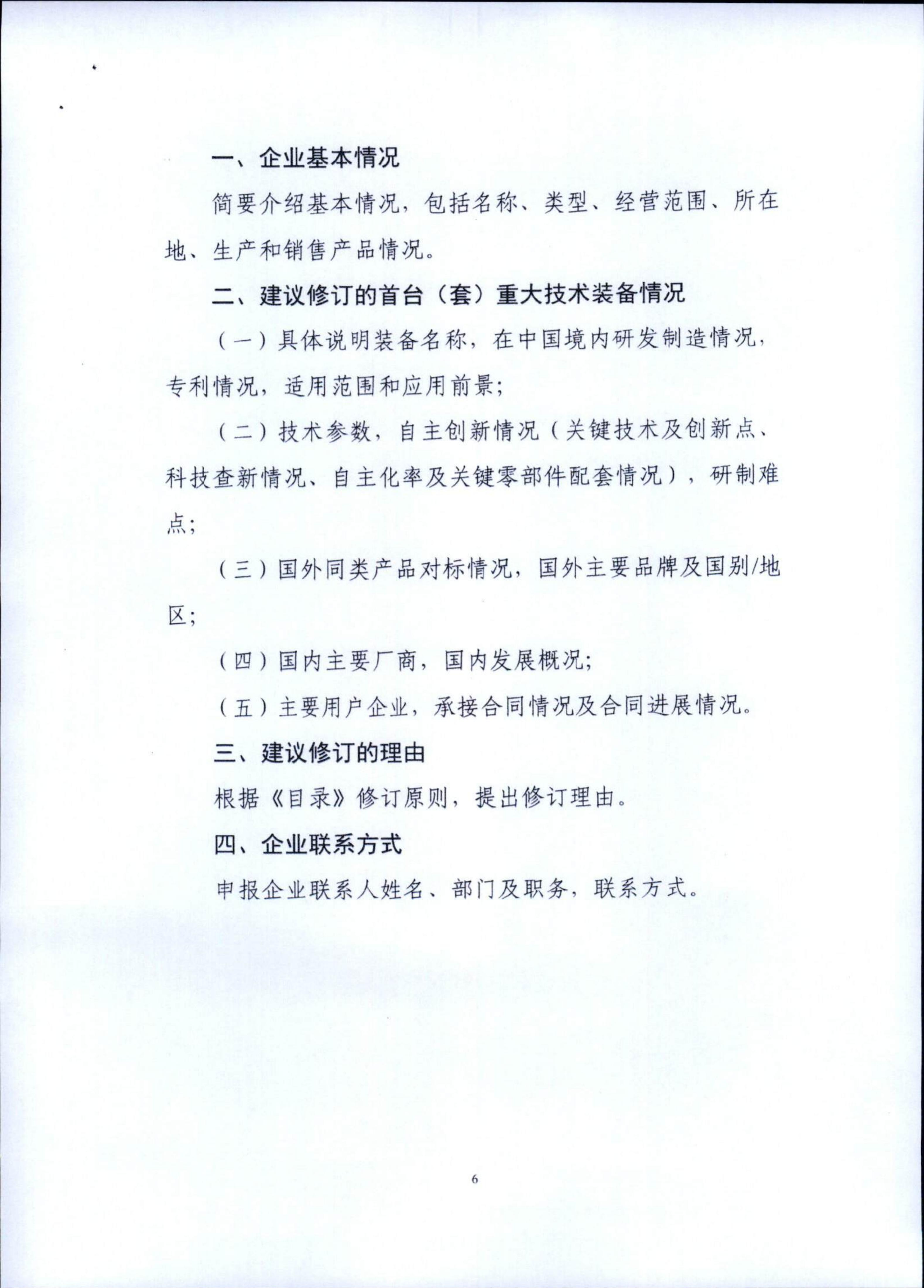 二、申报企业应按照《通知》要求,认真填写《〈目录〉修订建议》(见《通知》附件2),确保材料真实、完整、合规,并加盖企业公章。修订建议应突出体现首台(套)重大技术装备的战略性、集成性、引领性、标志性属性特征,以及智能化、绿色化、融合化的发展方向。