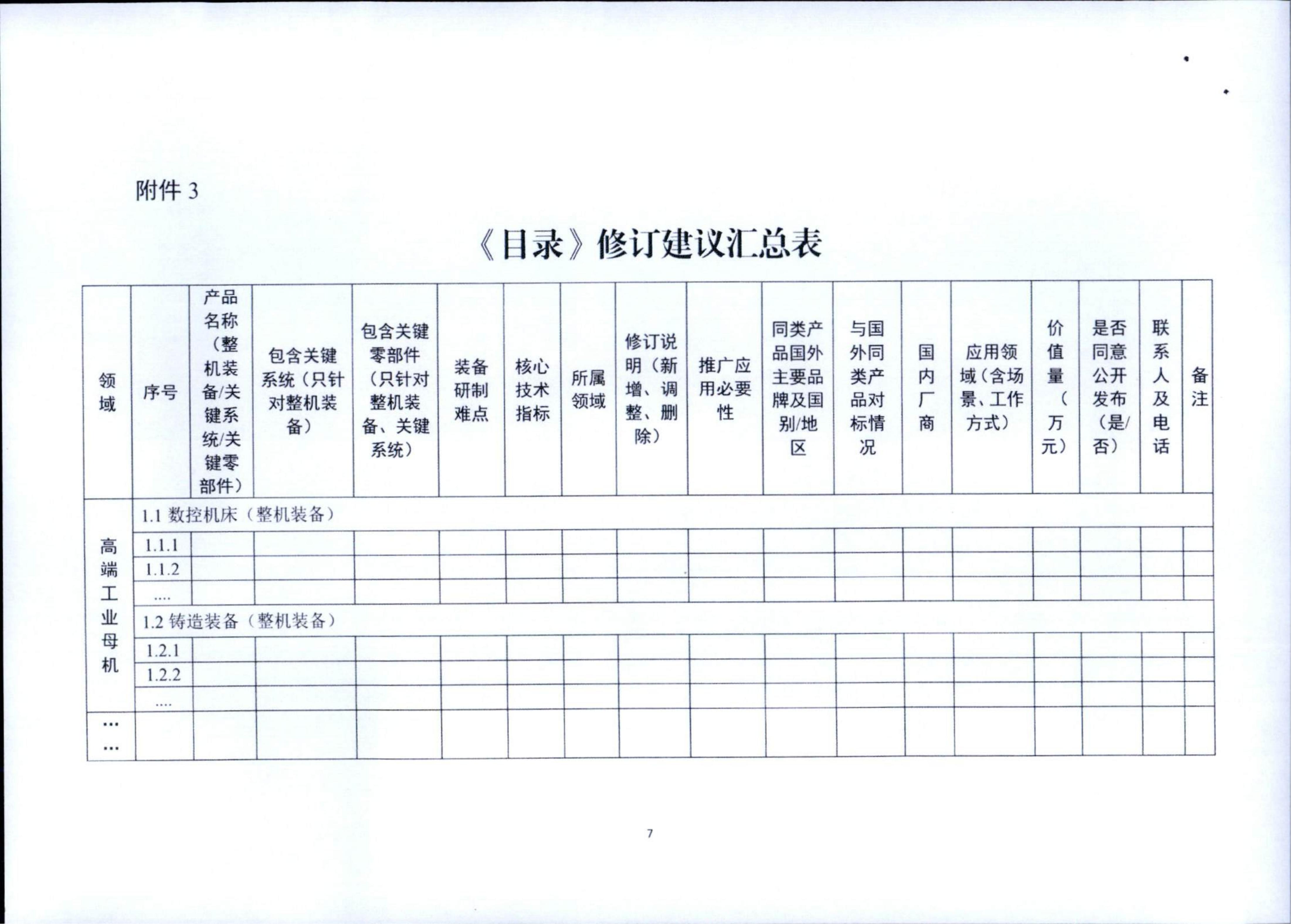 一、请认真组织辖区内装备制造企业,对照《通知》明确的征集范围(高端工业母机、高端电子专用装备与先进信息通信装备等15个领域)及《目录》修订原则(见《通知》附件1),积极提出修订建议。